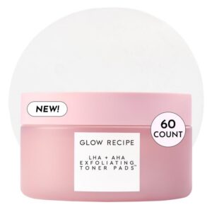 Glow Recipe LHA + AHA Toner Pads – Korean Exfoliating Toner for Face – Pore Minimizer – Hydrating Toner Pads – 5 Gentle Acids, Watermelon Enzymes, Hydrating Botanicals (60 Face Pads)