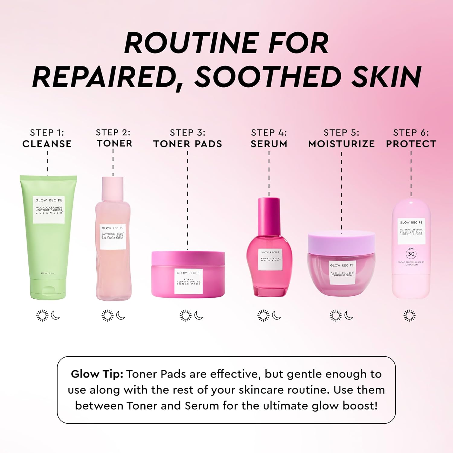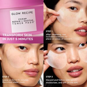 Glow Recipe PDRN+ Repair + Soothe Toner Pads – Fragrance-Free Face Toner Pads for Sensitive Skin – Barrier Repair, Redness Reducing + Calming Hydration with Centella – Korean Skin Care (60 Face Pads)