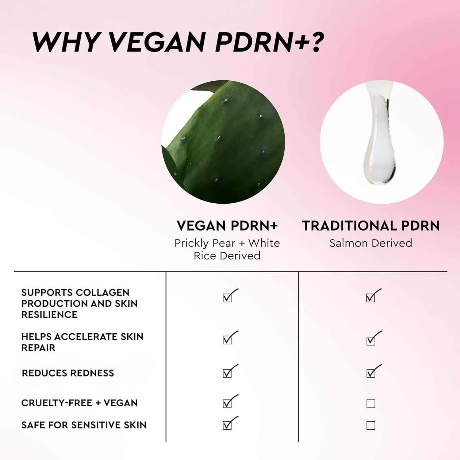 - Vegan PDRN+ Regenerative Complex – Features PDRN from white rice + prickly pear to support skin repair and renewal, helping to restore compromised, sensitized, and dry skin while improving overall resilience.