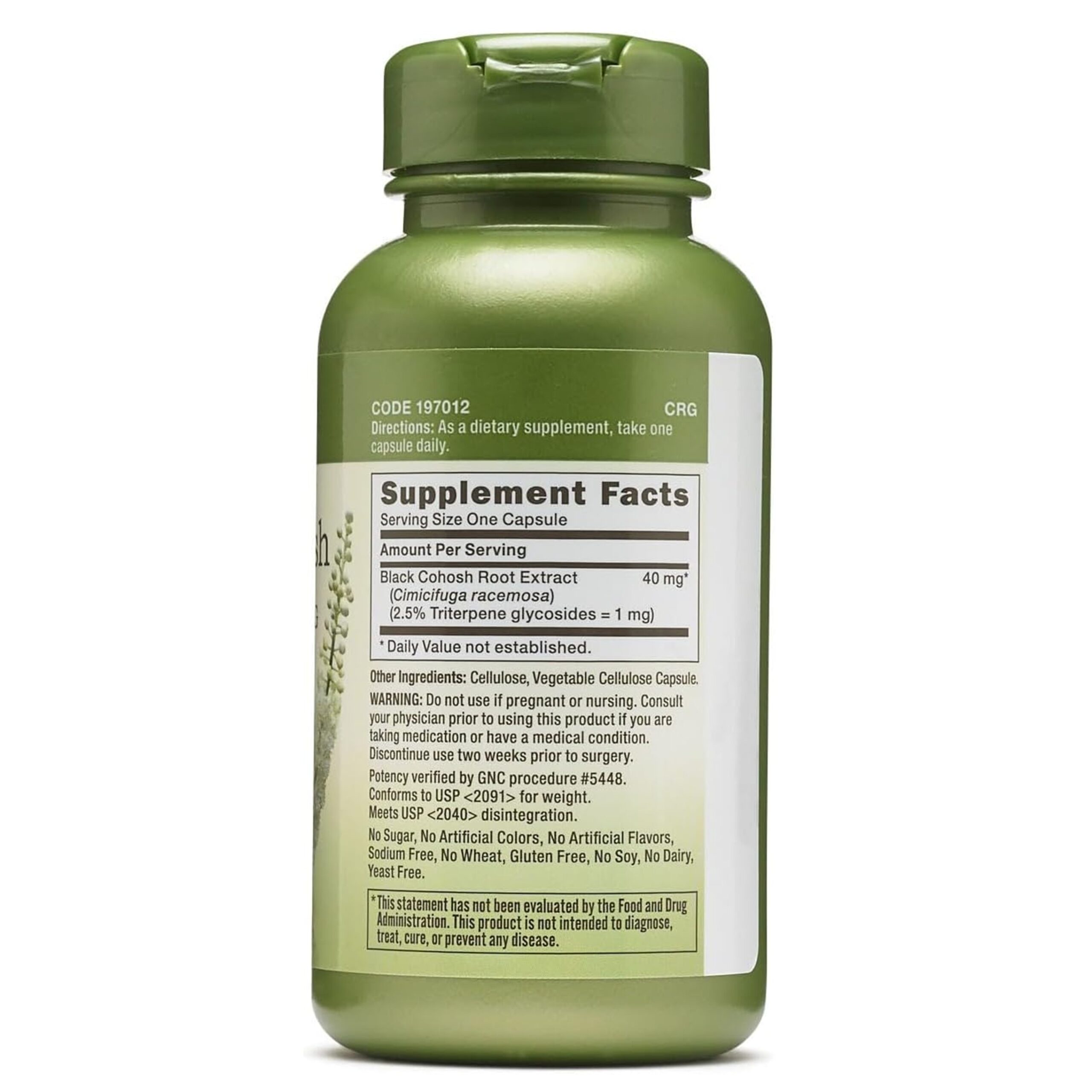 GNC Herbal Plus Black Cohosh Extract 40mg Supplement, Vegetarian, Support for Menopause, 100 Servings