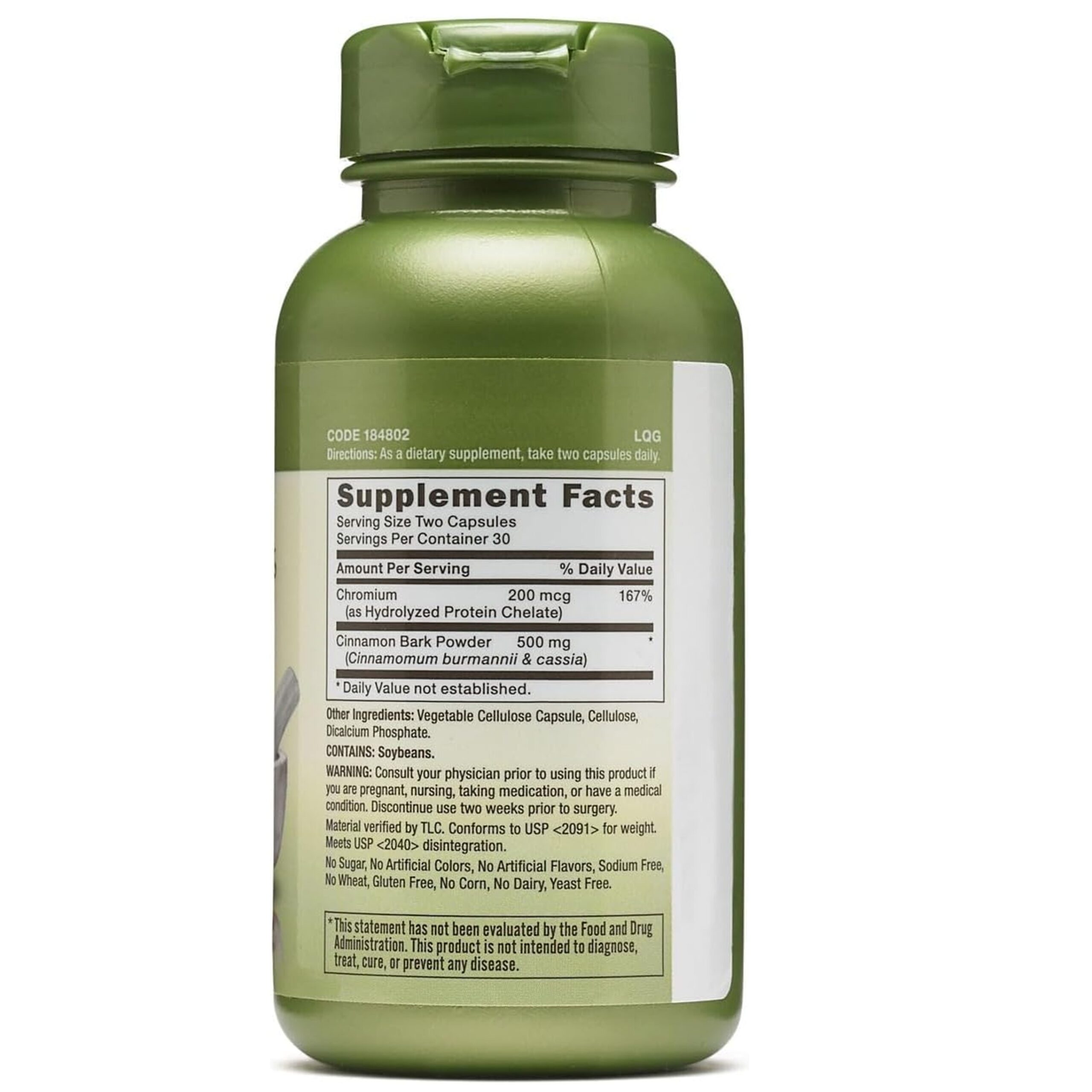 - EXPERTLY CRAFTED: Combines 500mg of cinnamon bark powder with 200mcg of chromium to support glucose utilization for energy and assist in the metabolism of protein, carbs, and fat.