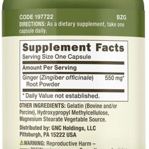 GNC Herbal Plus Ginger Root 550mg Supplement, Supports Digestive Health, 100 Servings