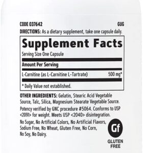 GNC L-Carnitine 500mg, Helps Metabolize Long-Chain Fatty Acids, 60 Capsules