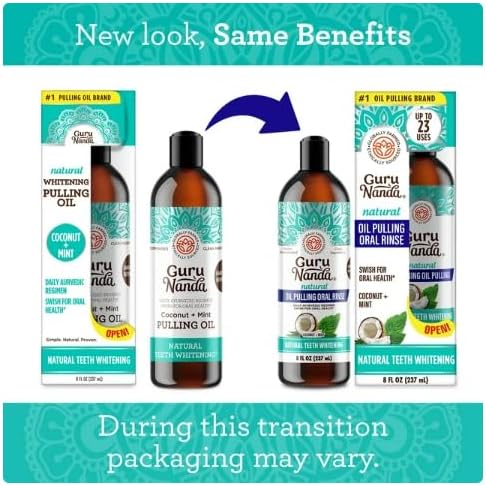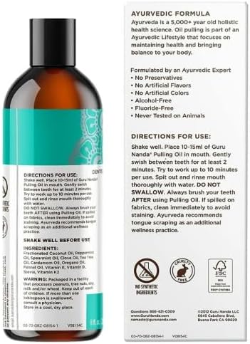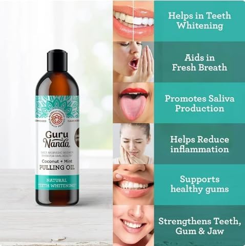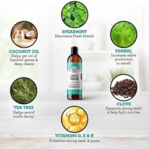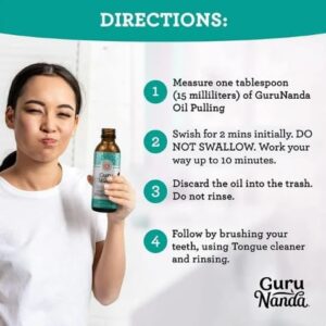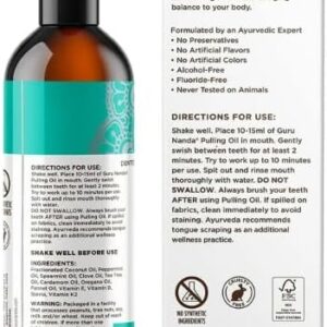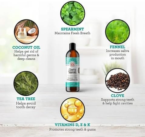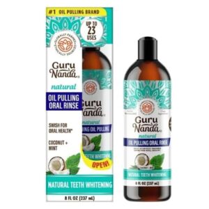 GuruNanda Oil Pulling with Coconut, Mint & Essential Oils & Vitamins D3, E, K2 – Natural Mouthwash – 8 oz