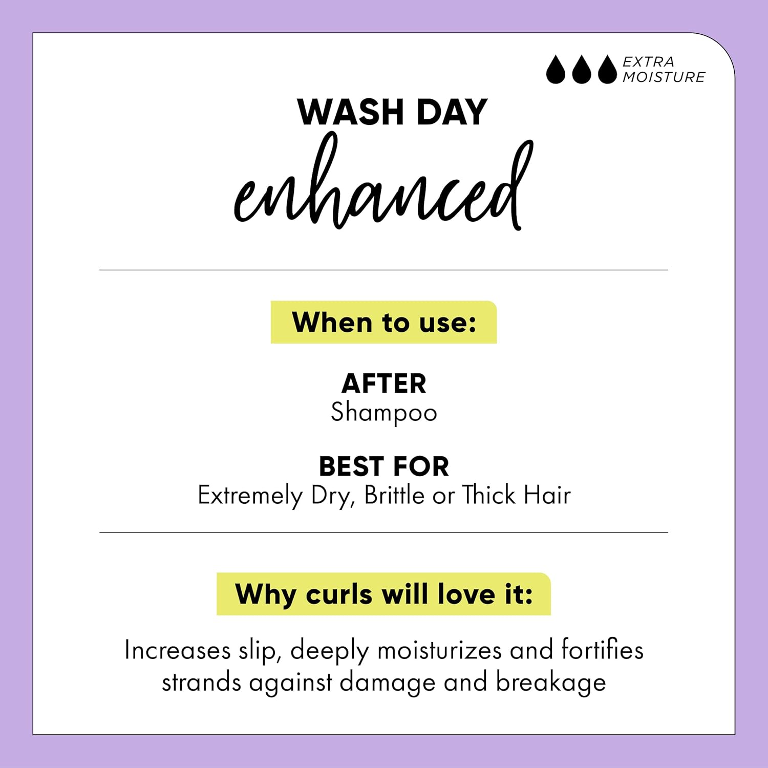 • How to Use | After cleansing, apply a generous amount from roots to ends in sections. Use fingers or a wide-tooth comb to detangle and ensure even coverage. Leave on for 3–5 minutes, then rinse