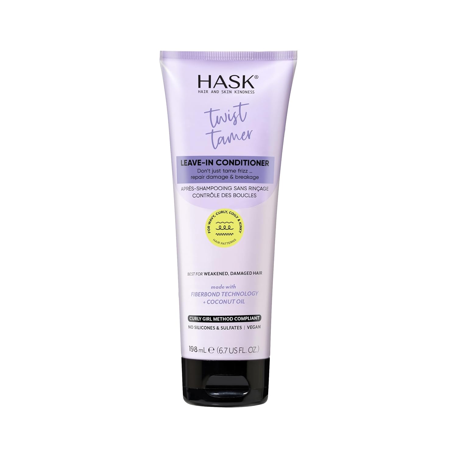 HASK Twist Tamer Leave-In Conditioner with FiberBond Technology & Coconut Oil for Wavy, Curly, Coily & Kinky Hair, Strengthens, Reduces Frizz, Boosts Hydration, Vegan, Sulfate-Free – 6.7 fl oz