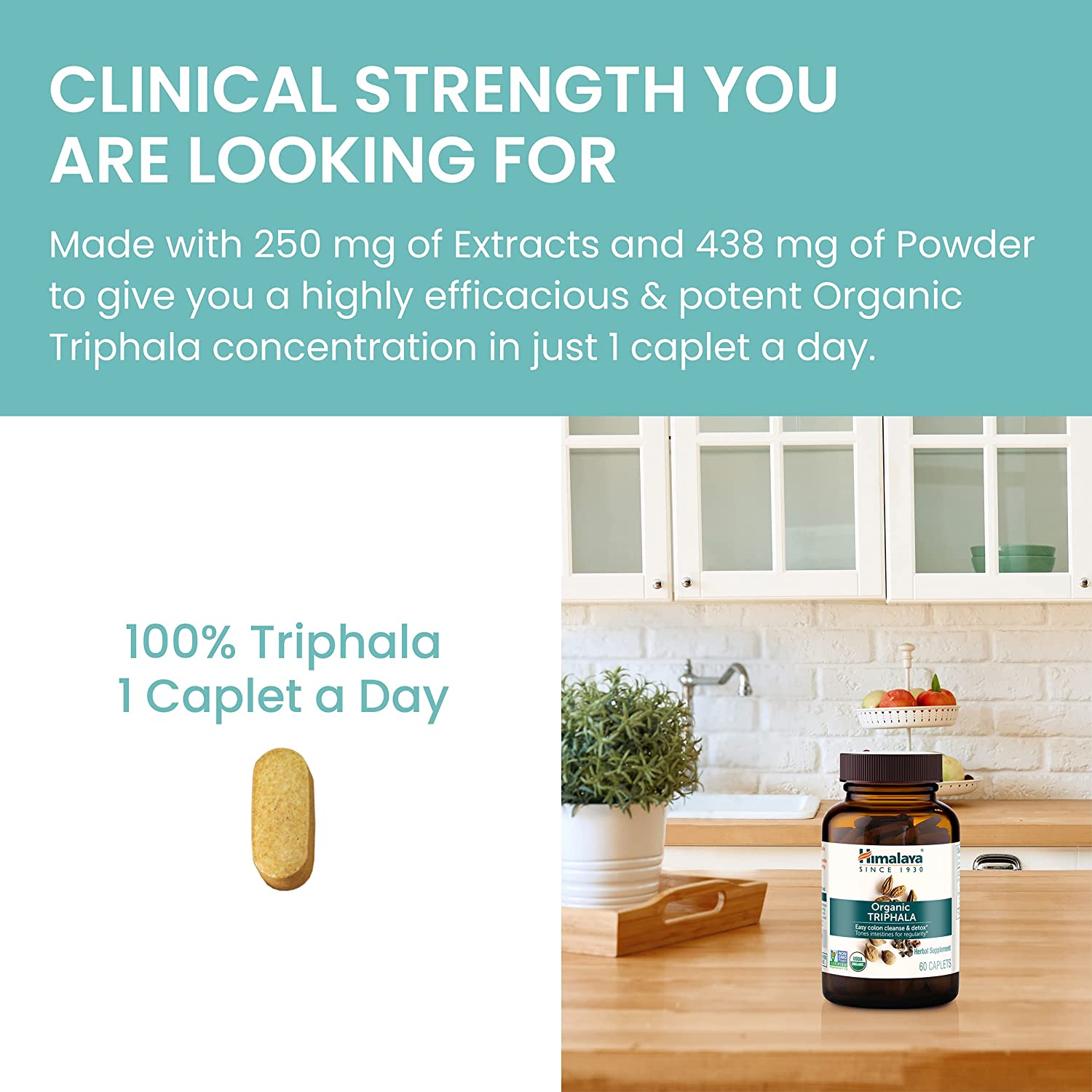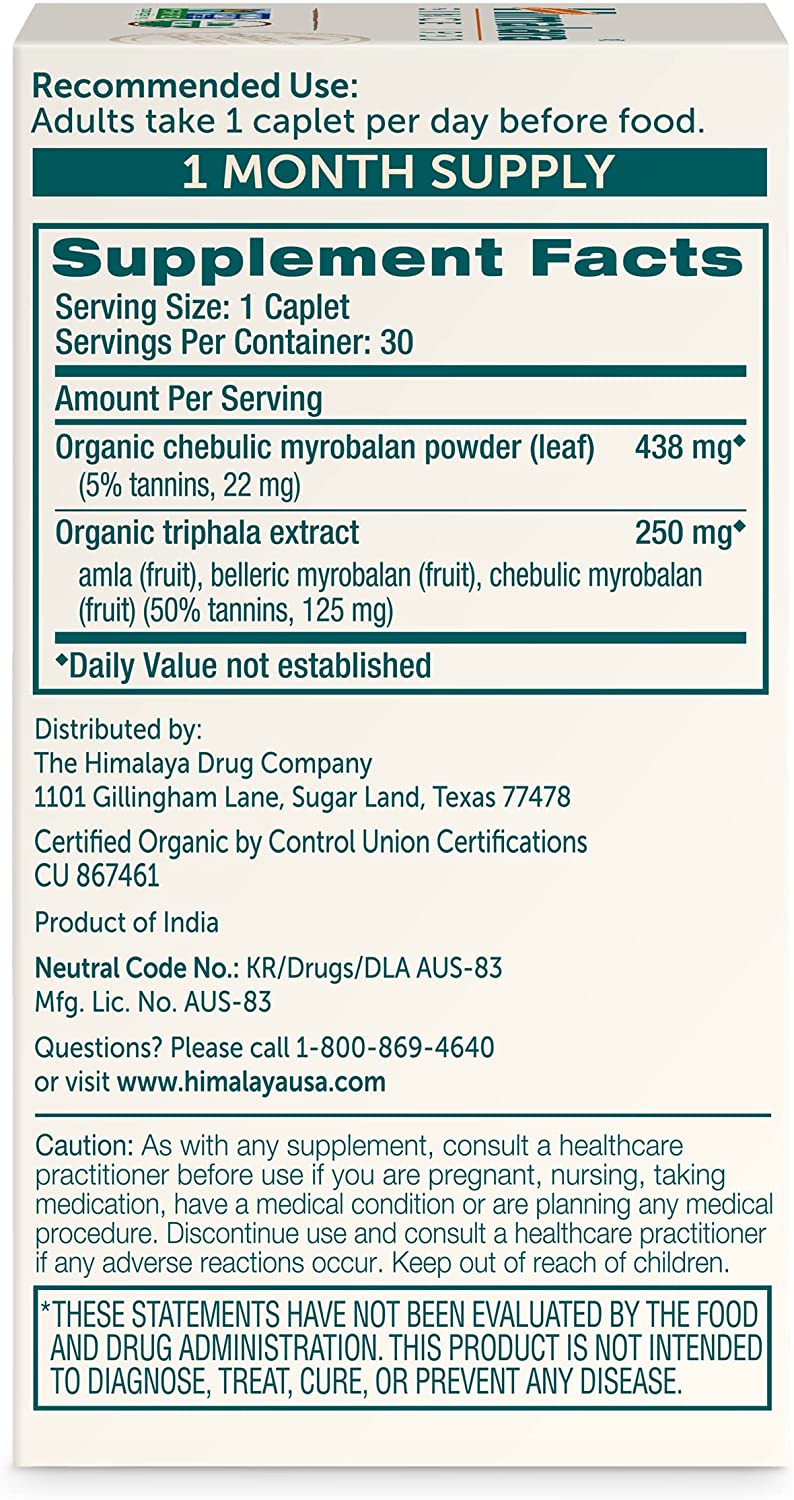 Himalaya Organic Triphala, Colon Cleanse & Digestive Supplement for Occasional Constipation, 688 mg, 30 Caplets, 1 Month Supply