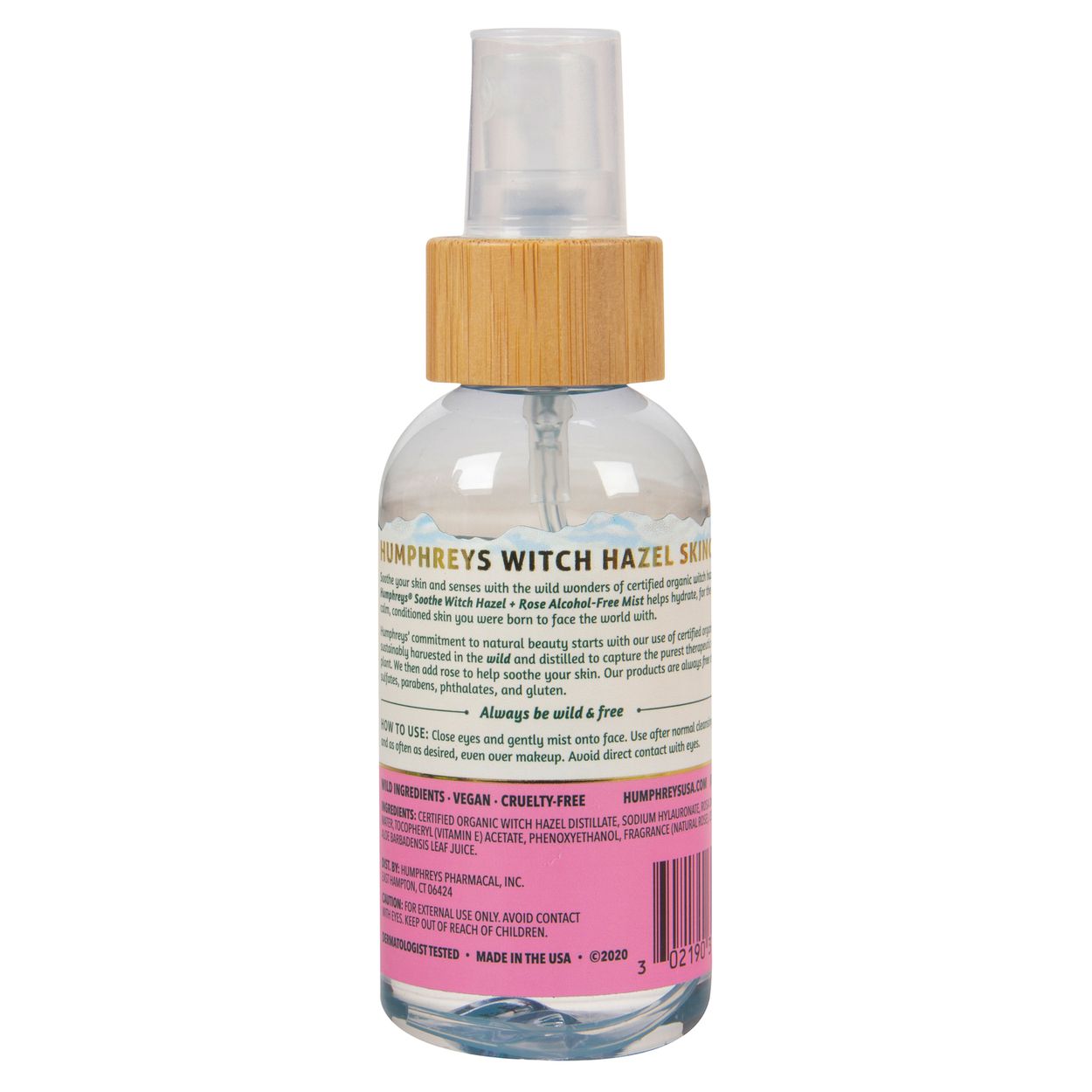 Humphreys commitment to natural beauty starts with our use of certified organic witch hazel, sustainably harvested in the wild and distilled to capture the purest therapeutic essence of the plant. We then add rose to help soothe your skin. Our products are always free of dyes, sulfates, parabens, phthalates, and gluten.