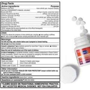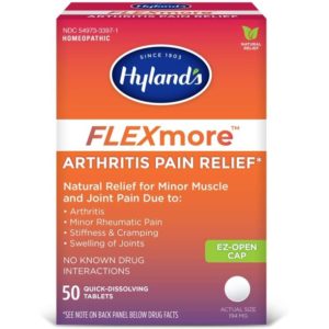 Hyland’s FLEXmore provides natural relief for minor arthritic or rheumatic pain, including joint swelling, stiffness, muscle aches, neck and back pain, muscular cramps, mobility. Made with natural active ingredients, it doesn’t contain acetaminophen, ibuprofen or other NSAIDs, has no side effects and can safely be taken with other over-the-counter or prescription medication as it has no known drug interactions. It comes with an easy-to-open cap, and the quick dissolving tablets melt instantly in your mouth, no water needed.