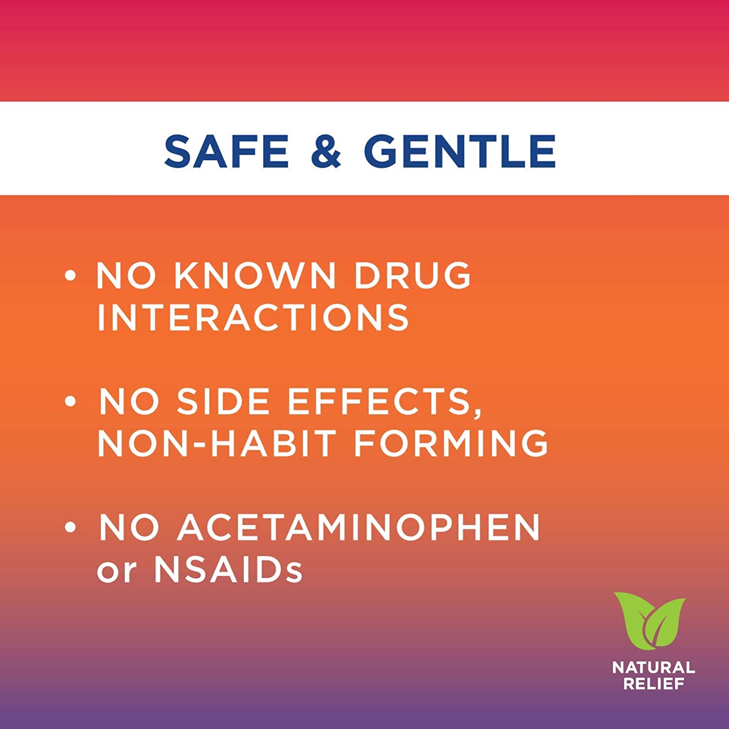 - MADE WITH NATURAL ACTIVE INGREDIENTS: No acetaminophen, ibuprofen, naproxen, aspirin or other NSAIDs