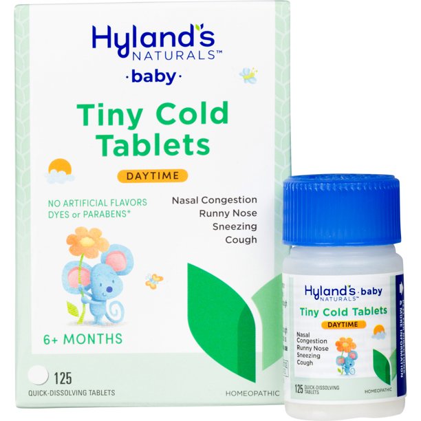 Hyland’s Naturals Baby Tiny Cold Tablets, Natural Relief of Runny Nose and Congestion Due to Colds, 125 Quick-Dissolving Tablets. Natural relief of runny nose, congestion and sneezing due to common head colds in babies 6 months+. Hyland’s Naturals is a leading consumer health brand with more than a century of history making high quality products to help people live healthier and happier lives. Made with natural active ingredients, our products contain no artificial flavors or sugars, dyes or parabens.