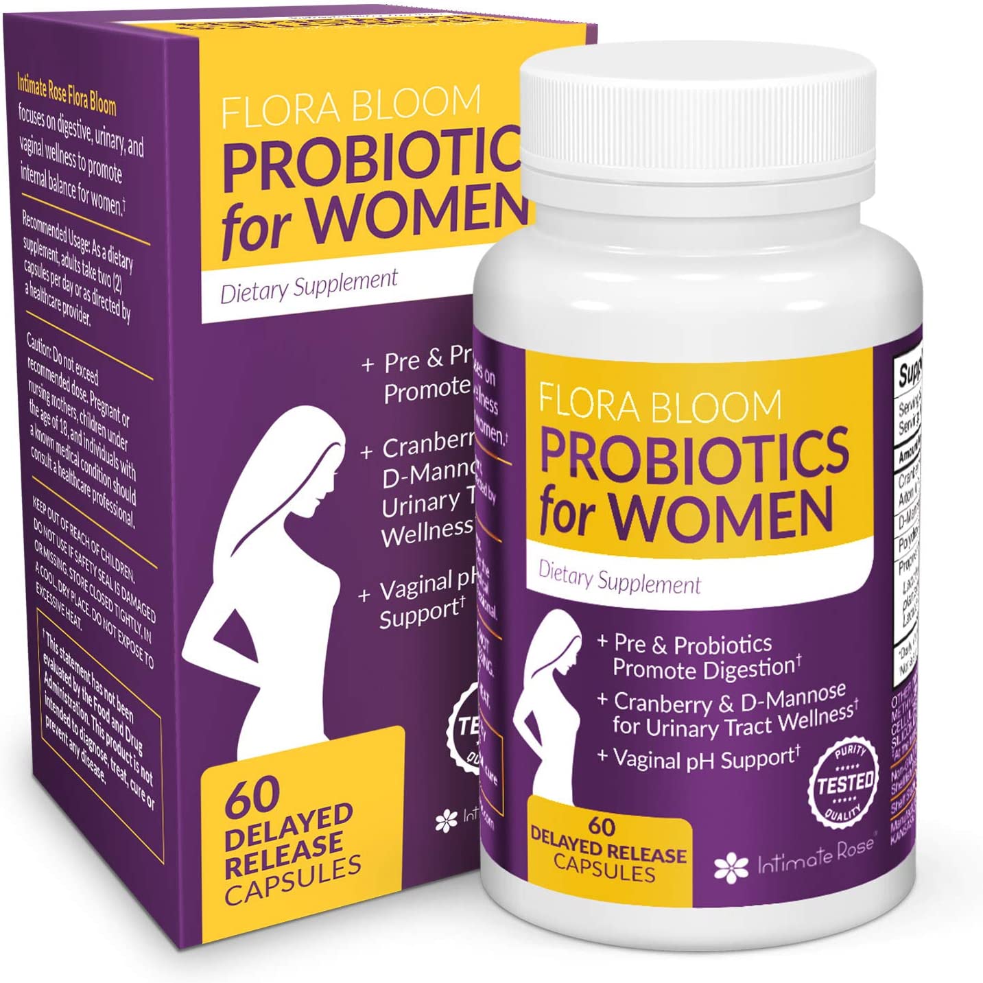 Flora Bloom Probiotics for Women contains prebiotics & probiotics designed to promote vaginal pH, digestion, and help avoid bacterial vaginosis. Our delayed-release capsule and prebiotics help the probiotics survive longer. In addition, we added Cranberry and D-Mannose to support urinary tract health.