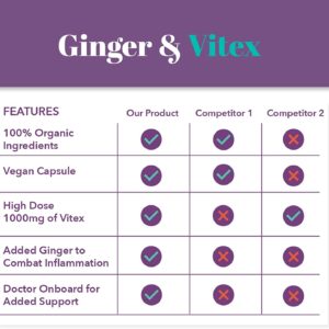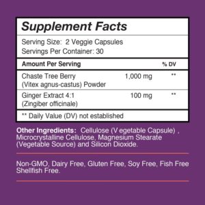 - VEGETARIAN & NON-GMO –Vitex supplement for women with ginger is veggie-friendly, non-GMO, and free of dairy, gluten, soy, fish, and shellfish.