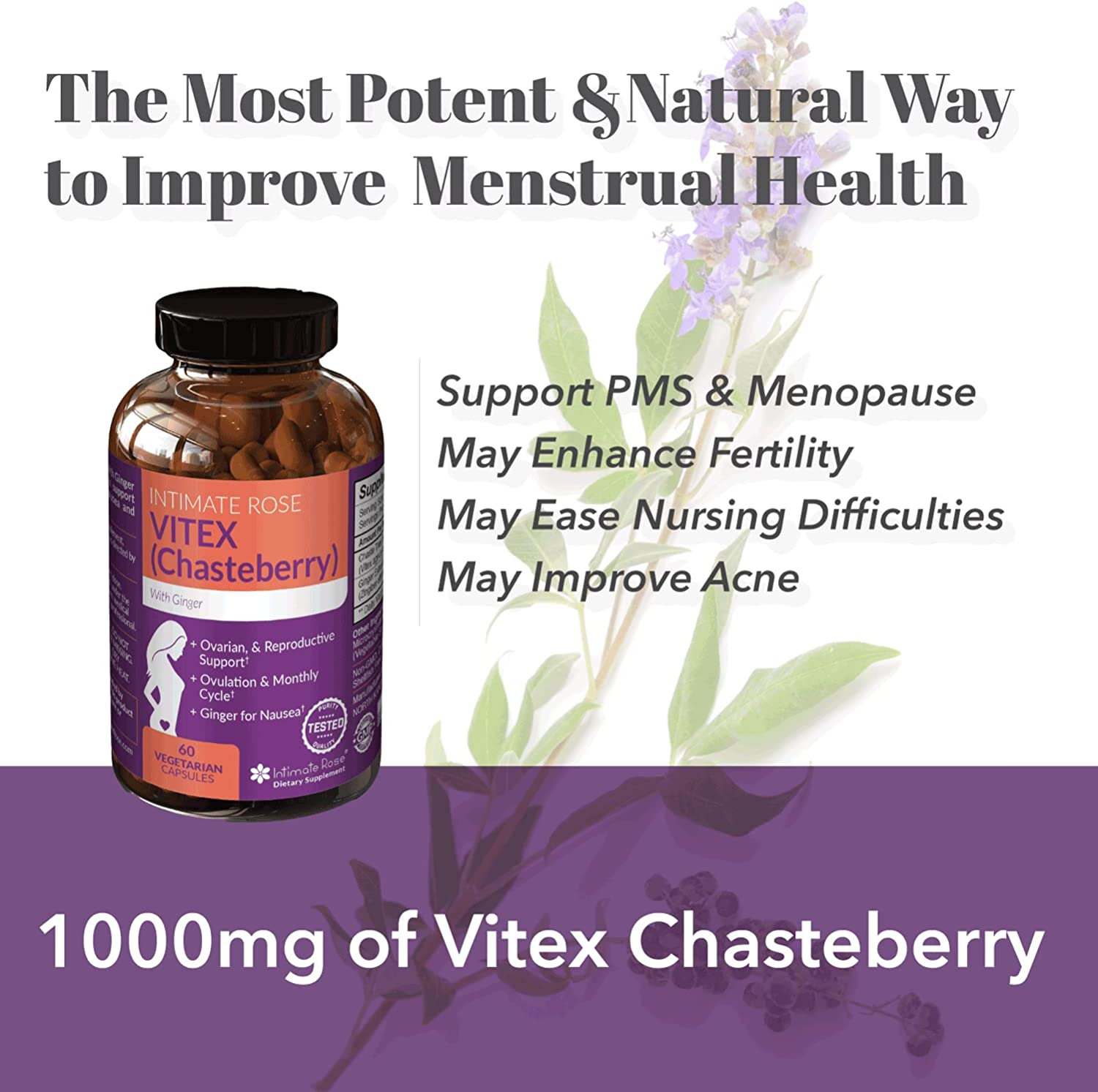 - A BETTER BLEND FOR BALANCE –Intimate Rose offers a potent amount of pure vitex (1,000 mg) with added anti-nausea ginger for digestive health.