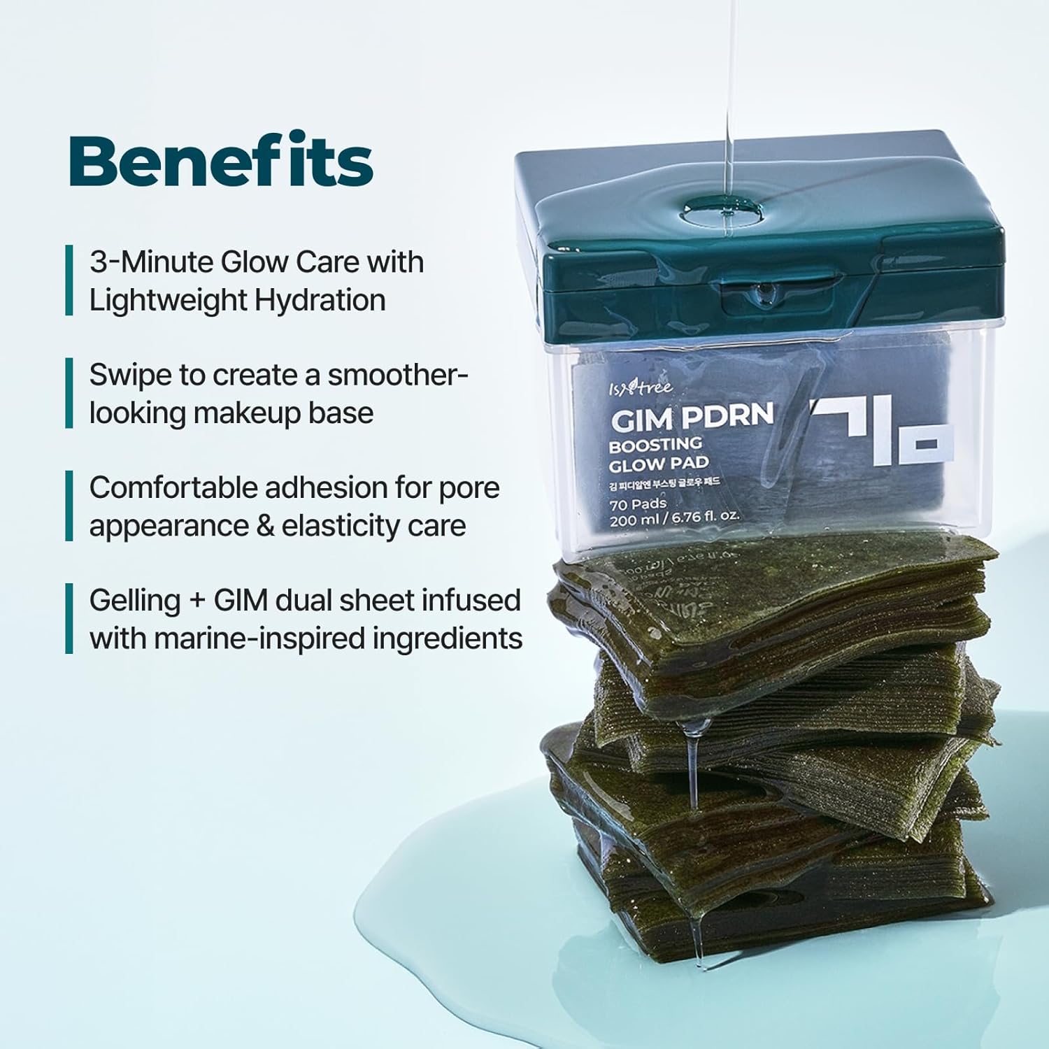 ISNTREE GIM PDRN Boosting Glow Toner Pad | Hydrating & Firming Dual-Sided Facial Pads with Korean Seaweed (GIM) PDRN | Pore Tightening, Smooth Makeup Base | Korean Skin Care, 70 Pads