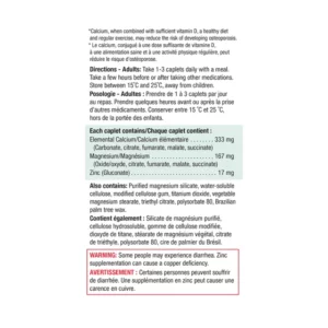Jamieson Calcium Magnesium + Zinc is enriched with zinc for added mineral support, this formula combines calcium and magnesium at the optimal 2:1 ratio to support strong bones and healthy muscle function, and may help to reduce the risk of developing osteoporosis.