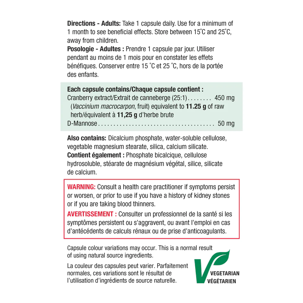 Jamieson Maximum Concentrate Cranberry Complex is comprised of 450 mg of cranberry and 50 mg of D-Mannose to help treat and prevent urinary tract infections. Each capsule is derived from 500 mg of fresh, pure cranberry juice concentrate.