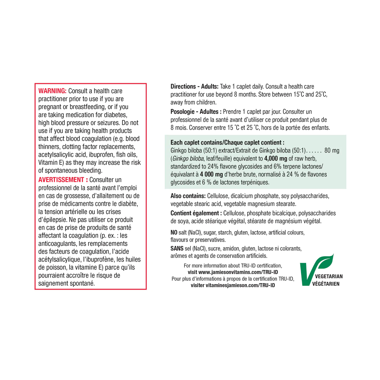 Jamieson Ginkgo Biloba 4000mg 90ct Caplets