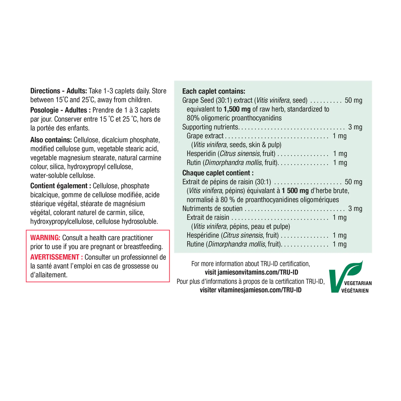 Jamieson Grape Seed is derived from premium European red wine grapes to deliver a powerful antioxidant that nourishes the body to help improve circulation and vision.