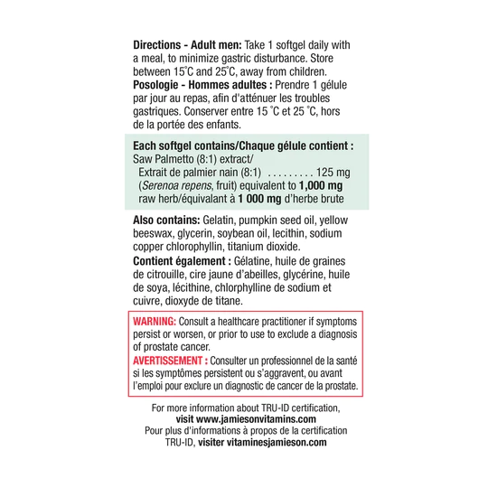 Jamieson Saw Palmetto 1000mg 60ct Softgels