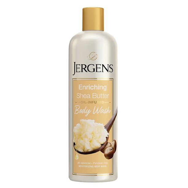 Infused with enriching Shea Butter oil Oil-infused formula reveals visibly soft and hydrated skin Heals and soothes extra dry skin, leaving it luminous Best for Normal to Dry Skin 24 Hour Moisturizer Dermatologist Tested If the shower is the only time you have just for you, then make the most of it! Treat yourself with a Jergens nourishing oil-infused body wash with Shea Butter.