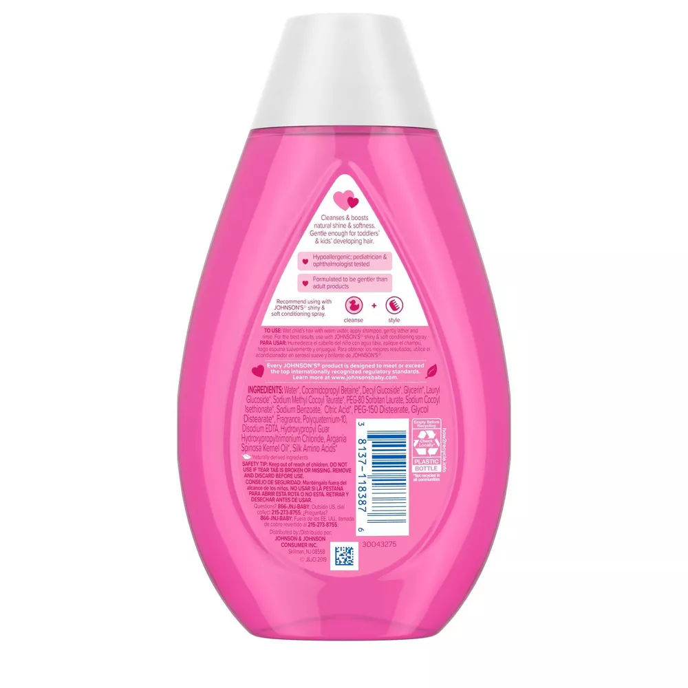 Cleanse your toddlers’ delicate hair and boost natural shine with Johnson’s No More Tears Shiny & Soft Shampoo for Kids. Enriched with argan oil and silk proteins, this children’s smoothing shampoo leaves hair with a long-lasting shine and softness. The gentle toddler shampoo is specially designed to be milder than adult products, making it ideal for toddlers’ and kids’ developing and changing hair. Its unique formula is ophthalmologist- and pediatrician-tested and is made with a tear-free formula that is as gentle to the eyes as pure water. Our children’s shampoo is also hypoallergenic and contains no parabens, phthalates, sulfates, or dyes. Every Johnson’s product is designed to meet or exceed the top internationally recognized regulatory standards. For best results, follow with Johnson’s Kids’ Shiny & Soft Conditioning Spray.