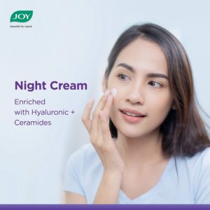 Joy Regenerating Night Cream is infused with the regenerative properties of hyaluronic & ceramides. It’s hydra boost technology effectively nourishes skin while ensuring maximum moisturisation. Eliminating roughness, making skin supple and free of wrinkles, the contained hyaluronic retains water in the deepest epidermis layers that promote skin softening. The regenerative properties rebuild the natural protective barrier of the epidermis and alleviate any kind of skin irritation while stimulating collagen synthesis!
