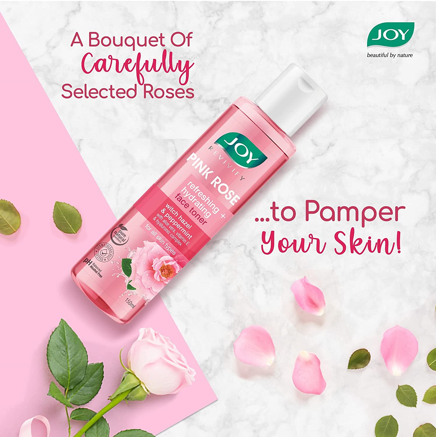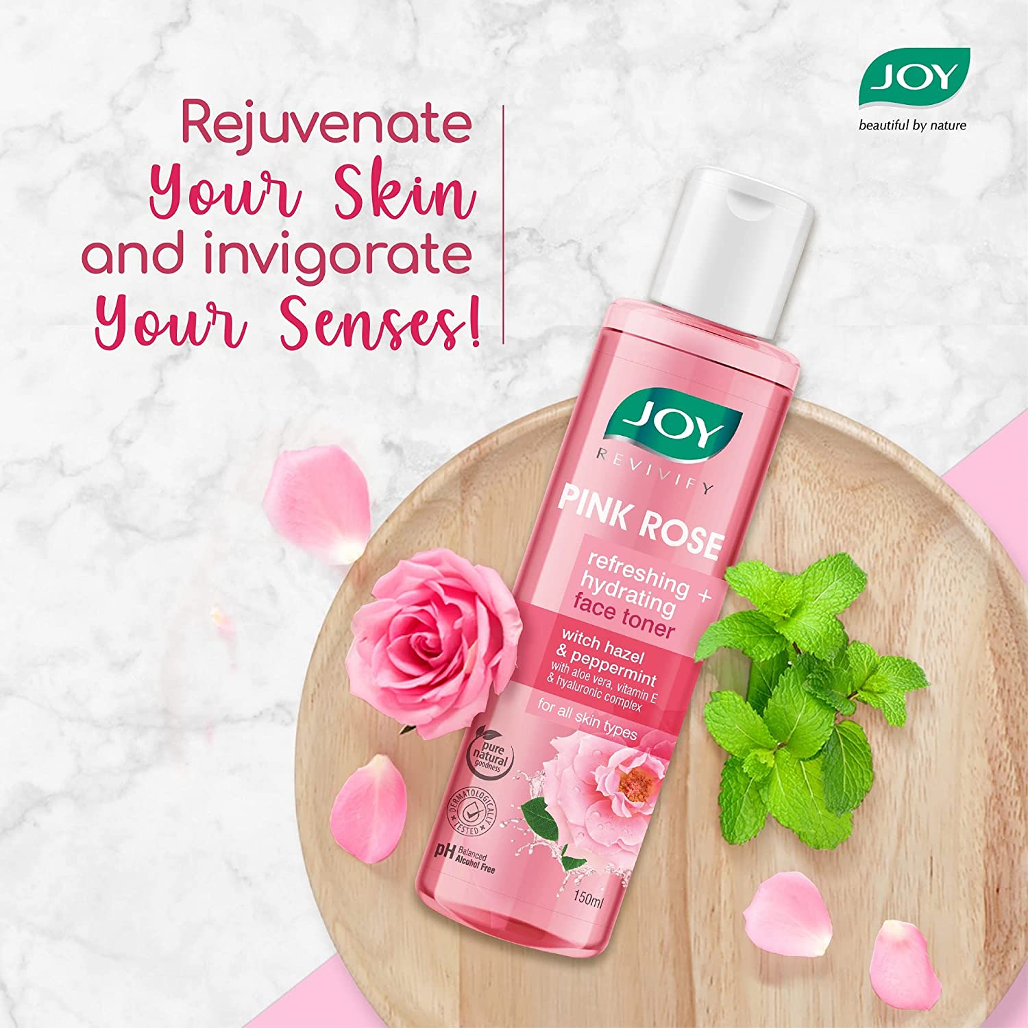 Joy Revivify Pink Rose Toner, Refreshing & Hydrating with Hazel & Peppermint Men & Women (150 ml)