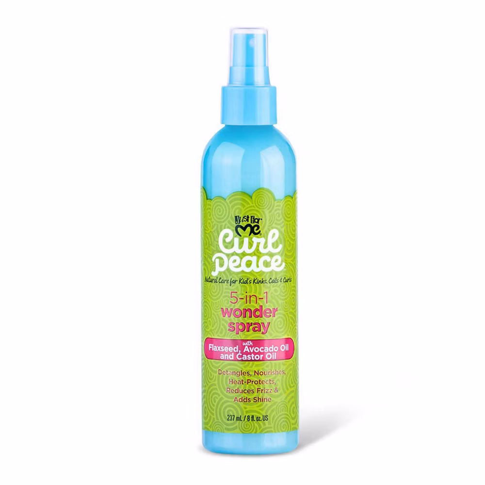 Just for Me Curl Peace 5-In-1 Wonder Spray – Detangles, Nourishes, Heat-Protects, Reduces Frizz, Adds Shine, Contains Flaxseed, Avocado Oil, Castor Oil, No Animal Testing, 8 oz
