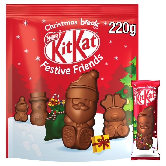 The individually wrapped Santa’s and festive shapes are made from smooth creamy milk chocolate and have a crispy wafer and chocolate centre. Celebrate your Christmas with KITKAT Milk Chocolate Filled Santas! These santas use sustainably sourced cocoa from the Nestle Cocoa Plan.