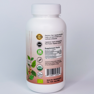Ingredients: Organic Ashwagandha Root Powder, Vegetable Capsule.