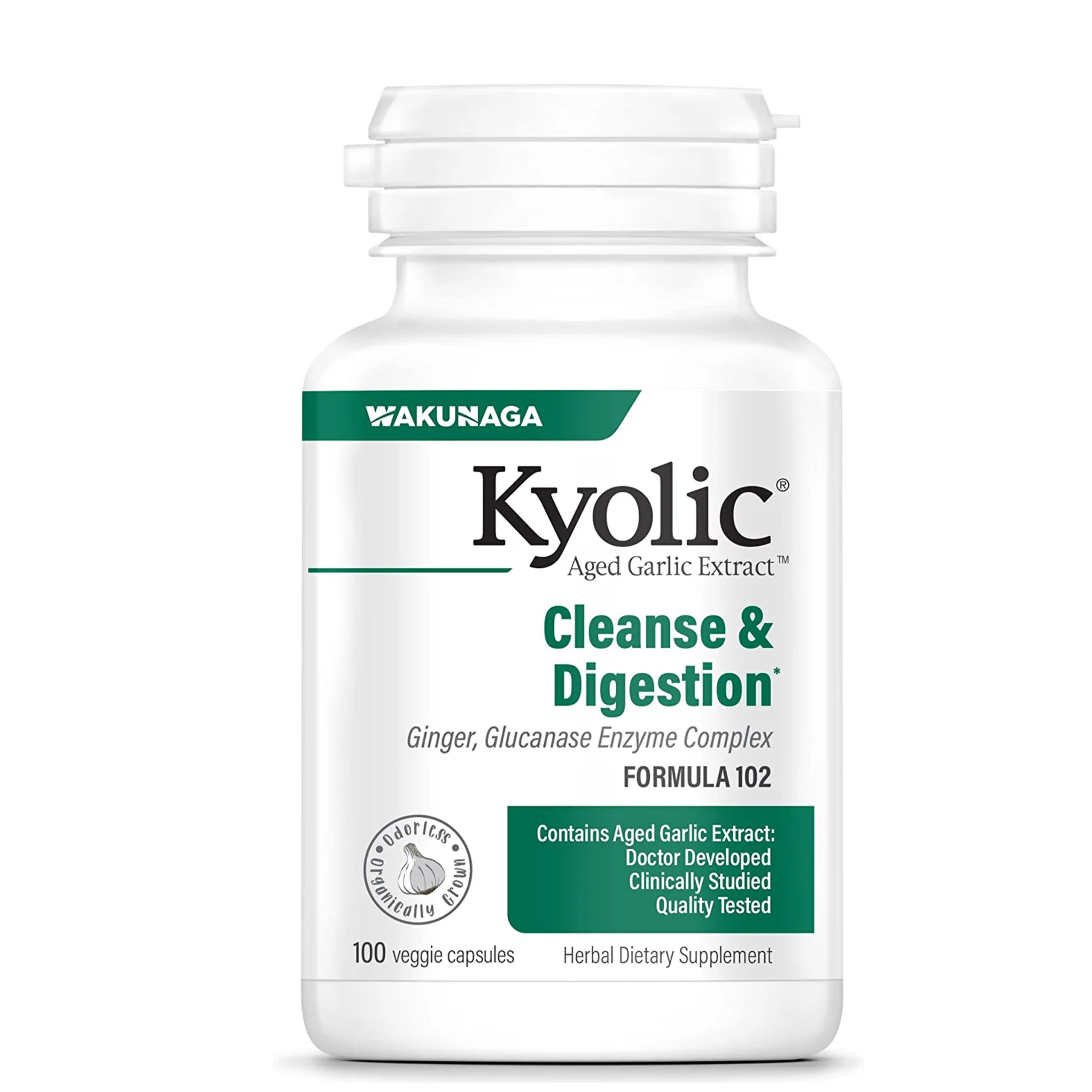 Kyolic Aged Garlic Extract Formula 102, Cleanse & Digestion, Ginger and Glucanase Enzyme Complex, 100 Vegetarian Capsules (Packaging May Vary)