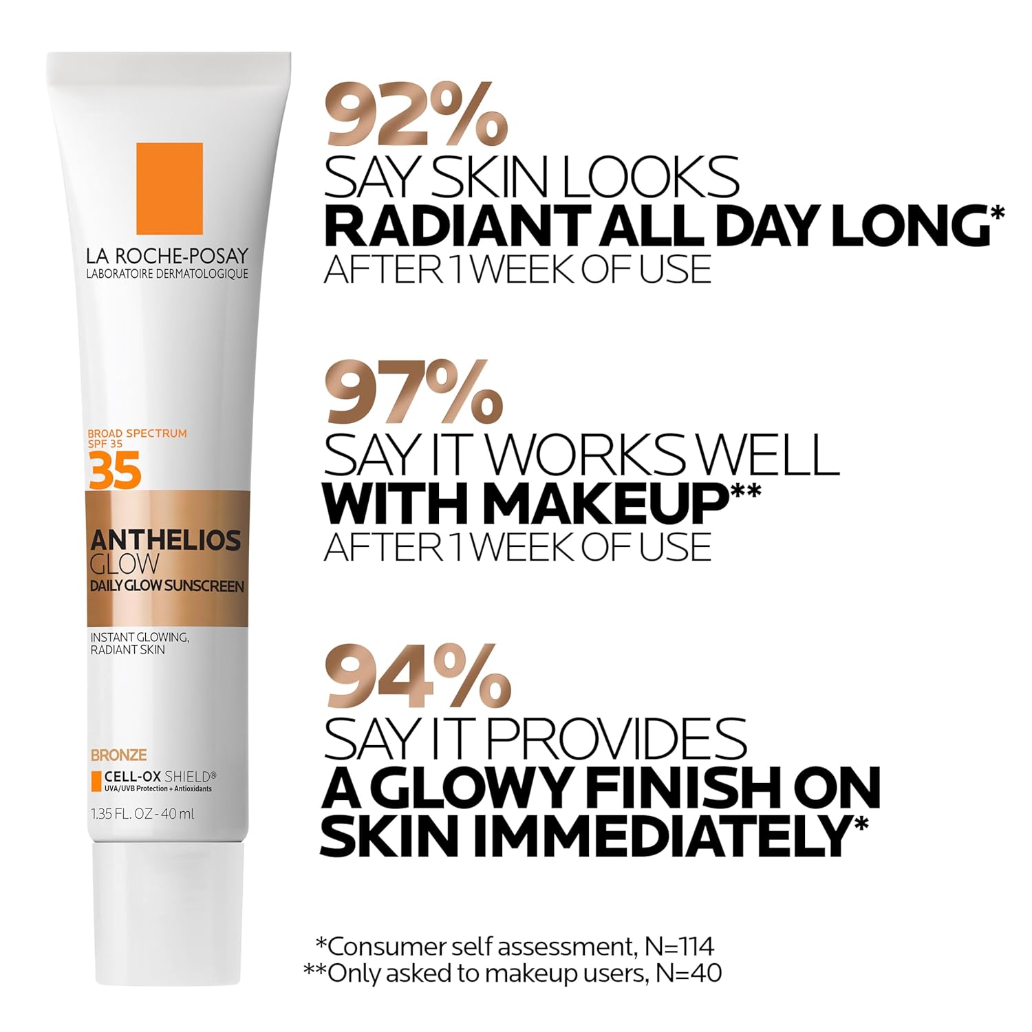 La Roche-Posay Anthelios Glow Tinted Sunscreen for Face with SPF 35, Broad Spectrum Protection, For All Skin Types Including Sensitive Skin, 24Hr Hydration, Lightweight & Fast Absorbing, Glowy Finish – BRONZE