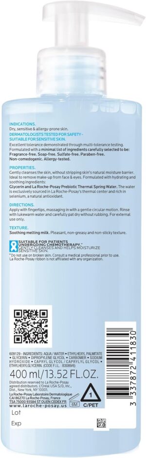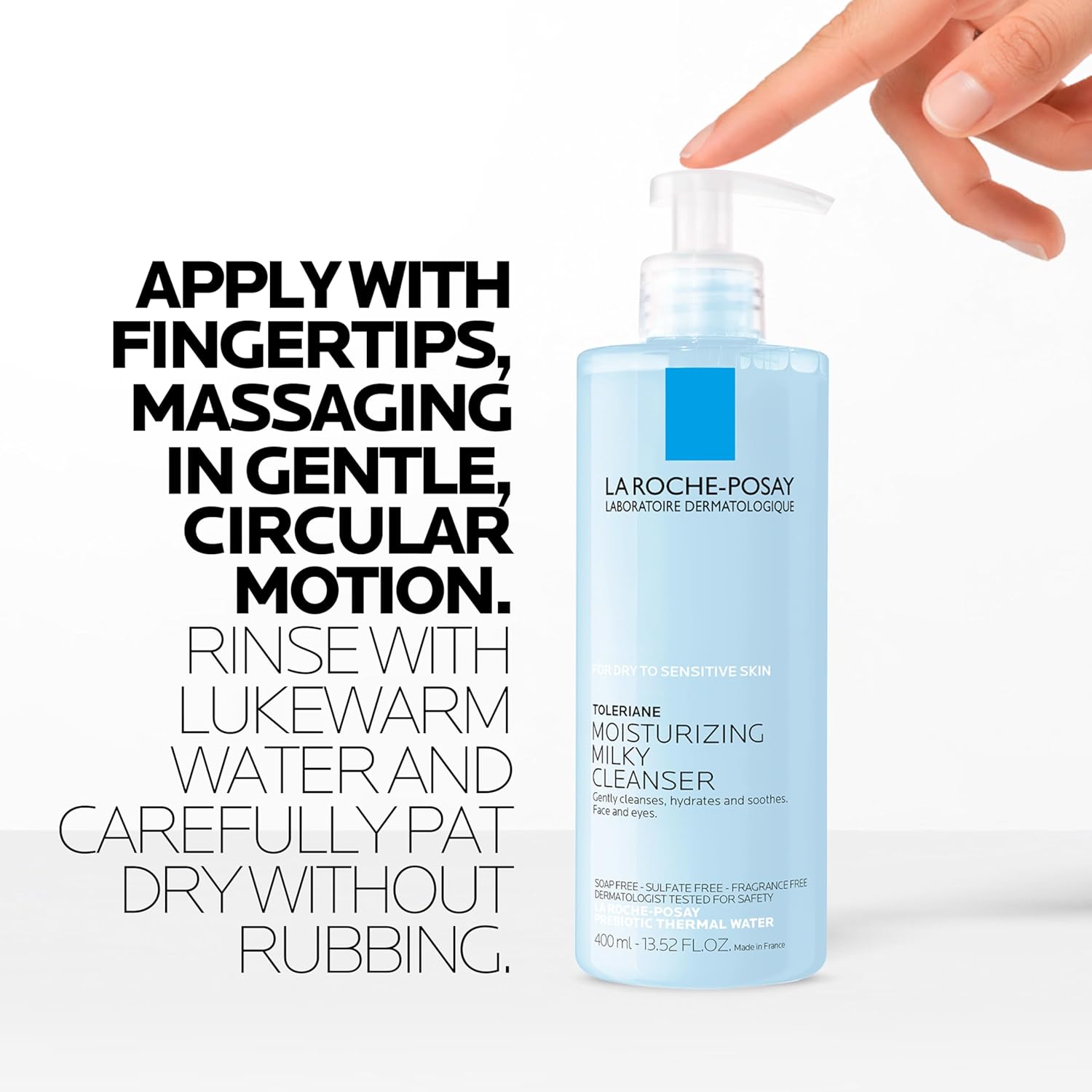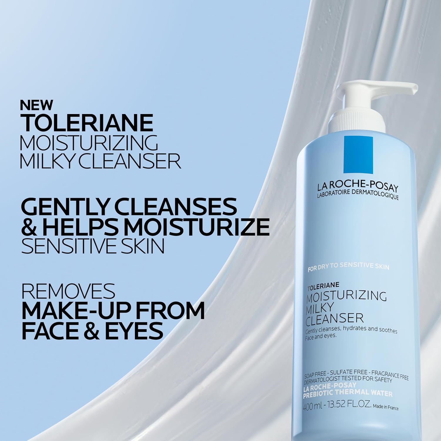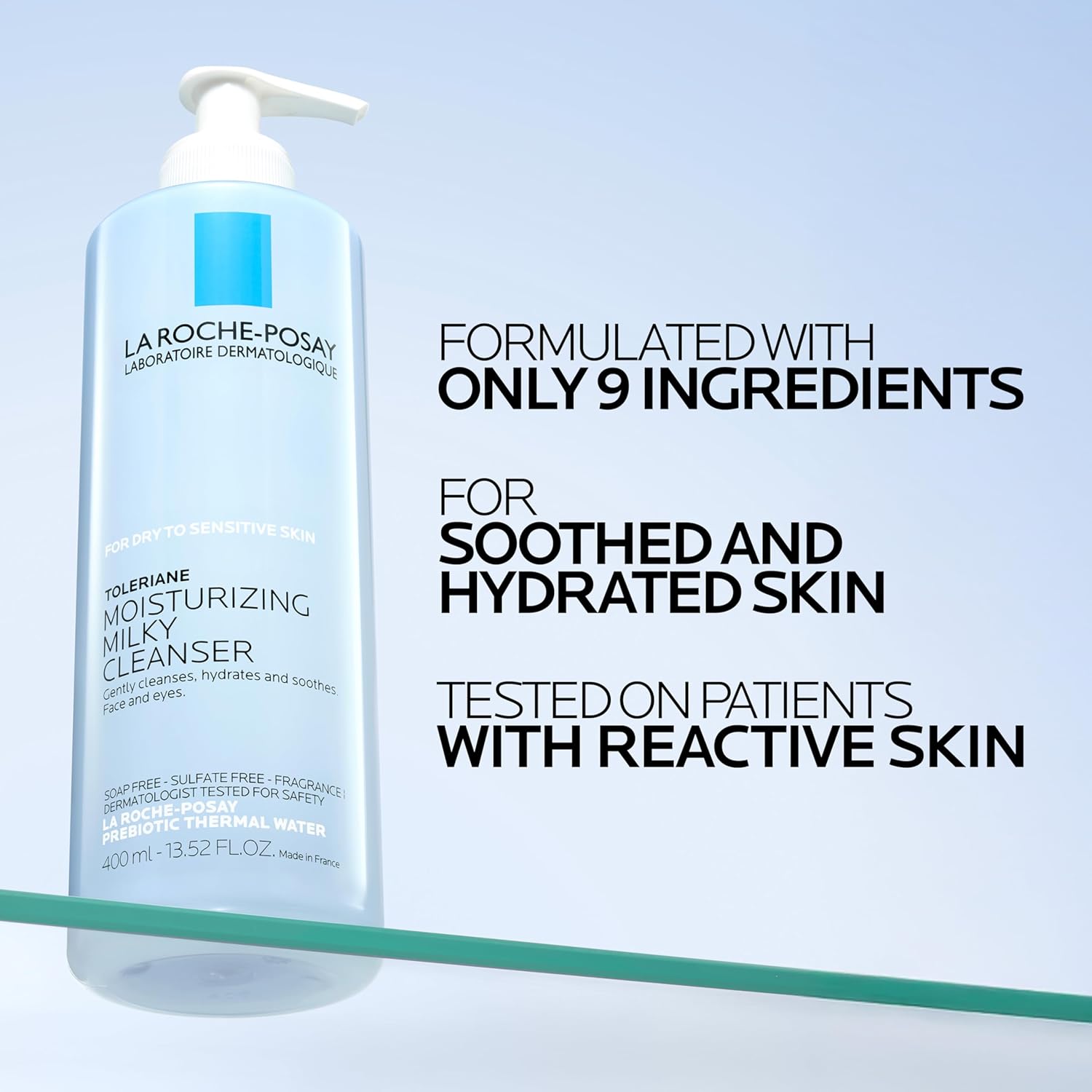 La Roche-Posay Toleriane Moisturizing Milky Cleanser, Gentle Face Cleanser with Glycerin for Dry, Sensitive & Allergy-Prone Skin, Face Wash for Hydration, Gently Removes Makeup & Impurities 400ml