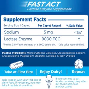 - Formulated with 9000 FCC lactase units of natural lactase enzymes, the caplets break down milk sugar to reduce discomfort from dairy sensitivity due to lactose