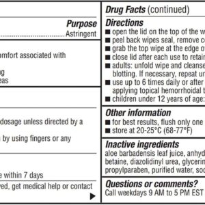 - Medicated wipes formulated with soothing aloe and cleansing witch hazel