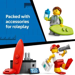 - LIFEGUARD TOY TRUCK – Kids can dive into action-packed seashore adventures with the LEGO City Lifeguard Beach Rescue Truck set for boys and girls aged 6 years old and older