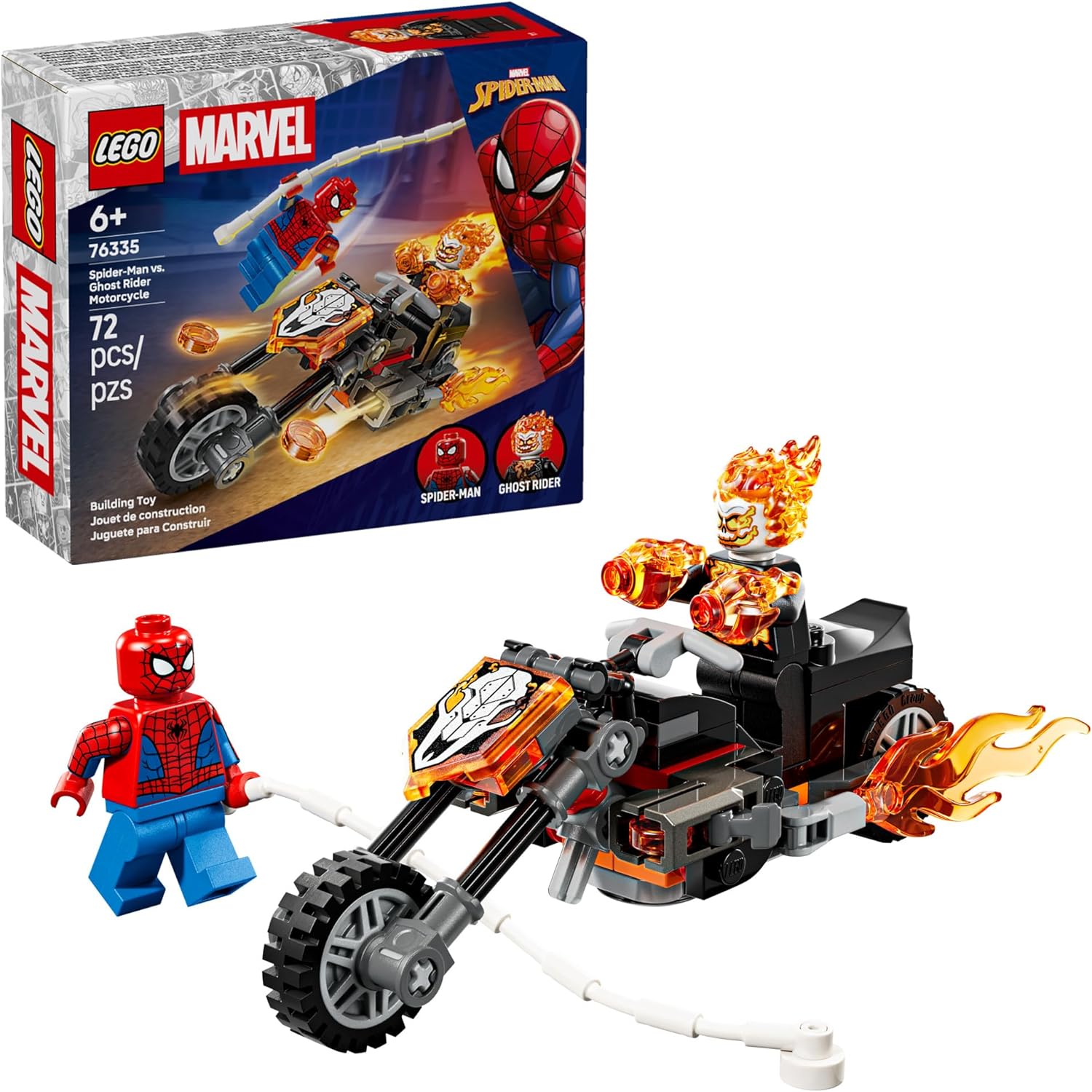 - HIGH-SPEED BATTLE ACTION – Kids can zoom into Super Hero adventures with the LEGO Marvel Spider-Man vs. Ghost Rider Motorcycle (76335) building set for boys, girls, and kids ages 6 years old and up