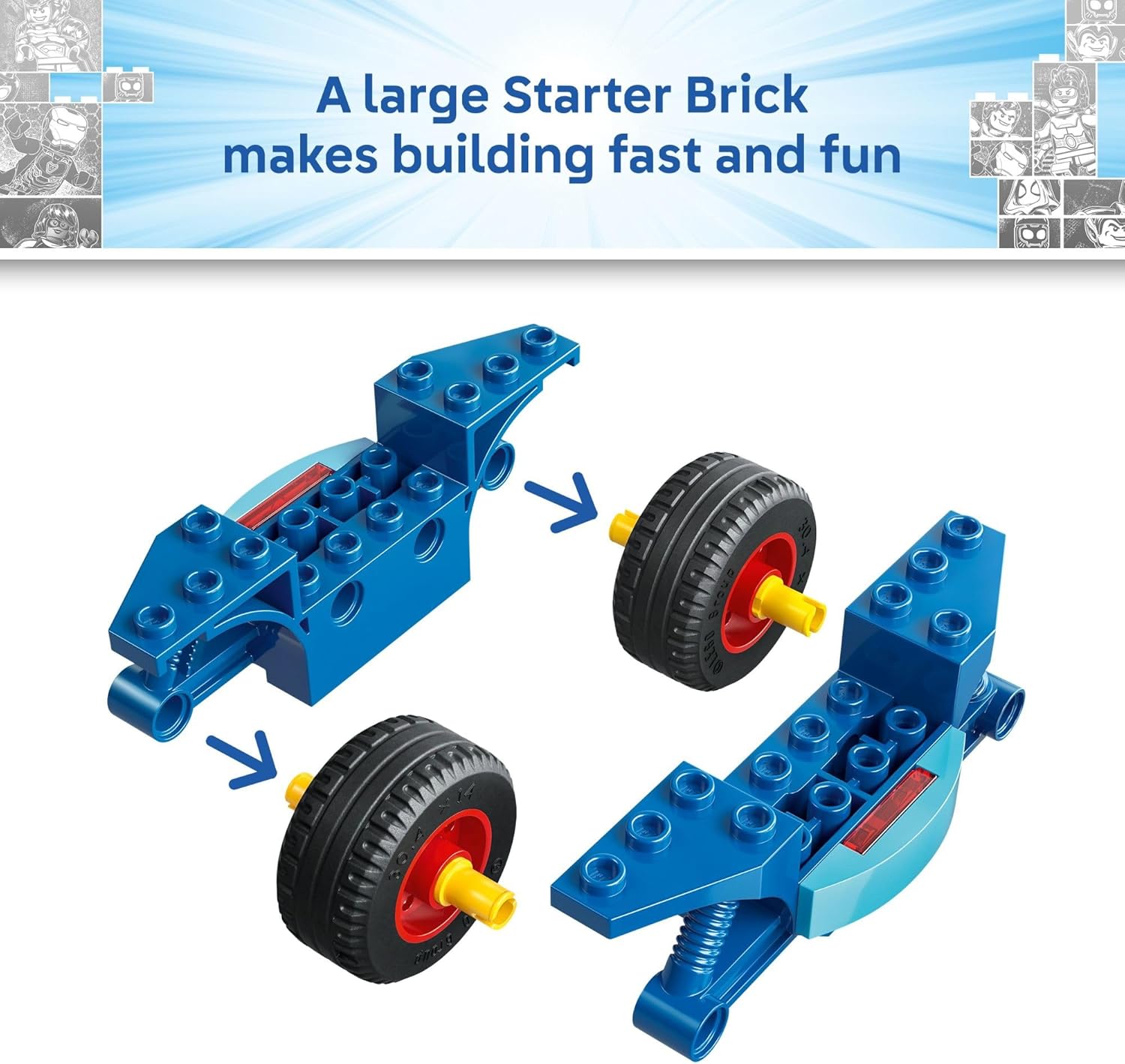 - 2 LEGO MARVEL MINIFIGURES – Inspire young builders and Marvel fans with an action-packed toy featuring 2 minifigures, a motorbike and a LEGO Starter Brick to make building fast and fun