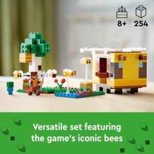 - Minecraft Bee Cottage Toy – Cool LEGO Minecraft The Bee Cottage buildable toy house features Honey Bear player character, baby zombie, 3 bees, and 1 angry bee figures.