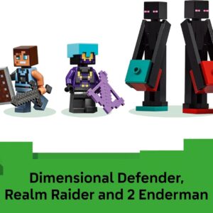 4 MINECRAFT MINIFIGURES – Young fans can roleplay epic battles with a Dimensional Defender, a Realm Raider and 2 Enderman, along with 2 Endermite mob figures and accessories like netherite swords, shields, and enchanted crossbows