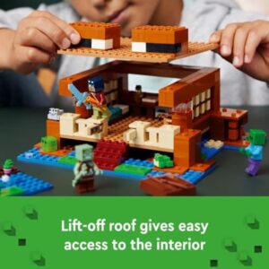 This LEGO Minecraft toy house is shaped like a Frog and comes with figures of popular characters from the game. LEGO Minecraft The Frog House (21256) is a hands-on gaming gift for fans ages 8 and up. A building toy for kids who love Minecraft gaming, The Frog House is packed with authentic Minecraft details – a bed, table, crafting table, furnace, chest, cake and honey – and a lift-off roof for easy access. Outside, there’s a farm where players can harvest beetroot, wheat and flowers, and a lake where kids can use a fishing rod and a dark oak toy boat with oars. There are 3 types of Frog Figures (green, gray and brown) and a Slime which, as players will know, has a special interaction with Frogs. This versatile LEGO Minecraft set includes a Minecraft hero, a zombie and a drowned figure with a trident, ensuring the toy offers endless gaming action and role-play fun. Young builders will also love the LEGO Builder app, which lets users to zoom in, rotate in 3D and track progress. Contains 400 pieces.