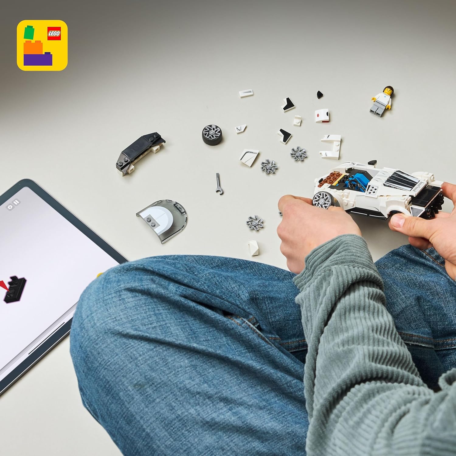 Legendary automotive craftsmanship takes center stage with the LEGO Speed Champions Bugatti Centodieci Hyper Sports Car (77240) building set for kids ages 9 years old and up. This premium model car kit captures the essence of one of the world’s most exclusive hyper cars, designed as a modern tribute to the legendary Bugatti EB 110. Every authentic detail has been meticulously recreated, from the distinctive five round air intakes and iconic horseshoe radiator grille to the dramatic overhanging rear wing and quad tailpipes that define this Bugatti masterpiece. Young builders can place the included driver minifigure—dressed in authentic Bugatti racing gear—behind the wheel for high-speed, pretend play racing adventures. After staging epic hyper car showdowns, car fans can proudly display their collection on shelves or a desk as eye-catching room decor. This exciting building toy perfectly balances hands-on construction fun with authentic details for an experience that both kids and adult builders will appreciate. Makes an awesome birthday gift for boys and girls who love sports cars, building toys, and bringing the world of high-performance racing to life. For enhanced building experiences, the LEGO Builder app provides digital guidance and 3D viewing tools. Contains 291 pieces.