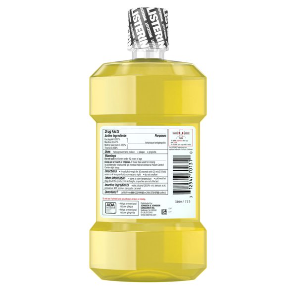 - 500-mL of LISTERINE Original Antiseptic Mouthwash for bad breath, plaque & gingivitis Oral care formula kills 99.9% of germs that cause bad breath, plaque and gingivitis