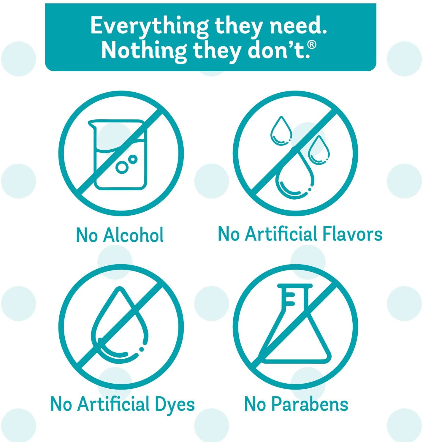 - No alcohol, parabens, artificial dyes, or artificial flavors