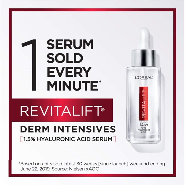 Revitalift Derm Intensives 1.5% Pure Hyaluronic Acid Serum with Vitamin C is a derm-validated, anti-aging serum to intensely hydrate, replump, reduce wrinkles and moisturize for dewy-looking skin.