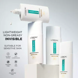 L’Oreal Paris Broad Spectrum SPF 50 Invisible UV Fluid: Helps prevent the look of dark spots and helps prevent aging signs when used as directed with other sun protection measures; reveal brighter and younger looking skin