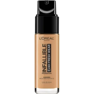 L’Oreal Paris Infallible Fresh Wear 24 Hr Liquid Foundation Makeup, 475 Sun Beige, Introducing our breakthrough longwear foundation. Up to 24HR Fresh Wear Foundation provides medium-to-full buildable coverage that lasts all day and allows the skin to breathe. The formula’s three oil absorbers resist sweat, water, and transfer. The ultra-thin liquid goes on smoothly to give a fresh, healthy-looking complexion that lasts. Color stays true and blends in evenly, so your makeup looks fresh all day. Non-comedogenic and formulated with SPF, this foundation is suitable for all skin types. In 40 shades for every skin tone.