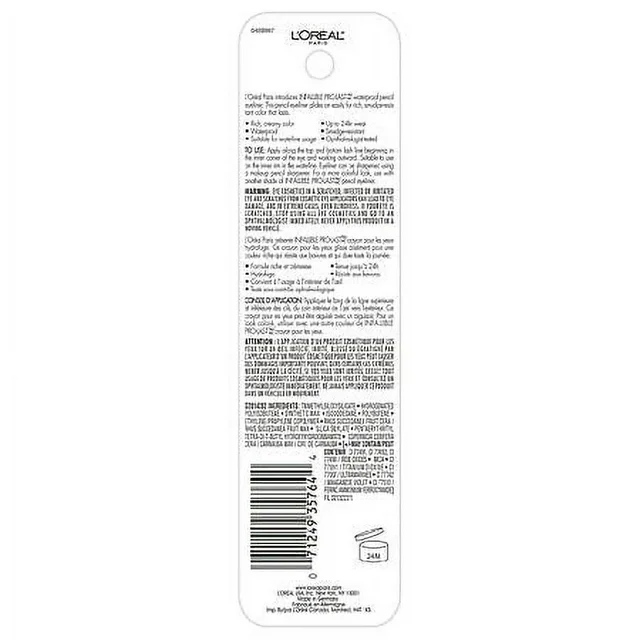 L’Oreal Paris introduces Infallible Pro-Last Waterproof Pencil Eyeliner. This long wear eyeliner glides on easily for creamy color that lasts up to 24 hours with no smudge. Packaging may vary. What you receive may not be what is reflected on site.