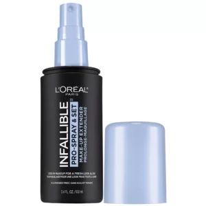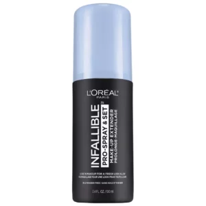 Keep your makeup looking “just applied” all day: no melting, fading or touch-ups necessary. L’Oreal Paris Infallible Pro-Spray + Set Makeup Setting Spray is a non-comedogenic makeup extender setting spray that locks in your total makeup look, Face, Eyes, and Lips, preventing color from smudging or settling into fine lines for all-day staying power.